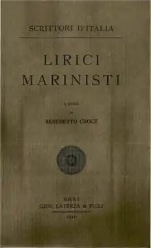 - 1.Benedetto Croce, ed. (1910). Lirici marinisti. Bari, G. Laterza.