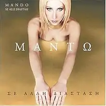 Se Alli Diastasi is an album by the Greek singer Mando. It was released in Greece in September 2000 by Sony Music Greece. The album is more pop than Mando's previous one, with many western type songs. Hits of the album include "Akoma Mia Fora", "S'Efharisto" and, the most successful one, "Pio Poly", with music by Mando and lyrics by Natalia Germanou. The album also includes "Fos" (Ask), a duet with Sertab which is one of Mando's most notable collaborations. Jean Michel Jarre gave his permission for the first time for a rendition of one of his songs, as he was impressed by Mando's vocal abilities when he listened to her demo tape. Mando's performance in "C’Est La Vie", first sung by Natasha Atlas, was liked so much that Jarre gave Mando not only his permission, but also his original arrangement of the song.[1]