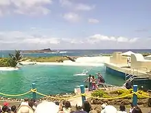 Sea Life Park Hawaii is a marine mammal park, bird sanctuary and aquarium[2] in Waimānalo near Makapuʻu Point, north of Hanauma Bay on the island of Oahu in Hawaii, United States. The park first opened in 1964, and includes exhibits that let visitors interact with the animals by swimming with dolphins, sea lions, and rays, taking a sea safari in the aquarium, and feeding the sea turtles.[3] The park was acquired in 2008 and is operated by Palace Entertainment, the U.S. subsidiary of Parques Reunidos[4] from Dolphin Discovery, which had acquired it in 2005.[5]