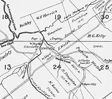 Charles Brown, a former whaler from San Francisco purchased a portion of the Rancho Cañada de Raymundo Mexican-era land grant of John Coppinger[2] and settled there with his wife. The newly acquired property was named the Mountain Home Ranch and previously had an adobe house built in 1839 (still located at the intersection of present day Portola Road and La Honda Road) and a sawmill.[2][3][4] In 1852 John Smith joined Charles Brown at the Searsville site, and the next year August Eikerenkotter arrived and started a store and hotel.[5] By 1854 John Howell Sears moved to the site, for whom the town was named based on his postal contract.[1][6]