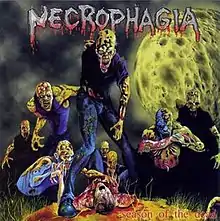 Season of the Dead is the first full length studio album by the death metal band Necrophagia. It was released in February 1987 by the label New Renaissance Records. It is the only album to feature Joe Blazer on drums, Larry Madison on guitar, and Bill James on bass. It was also the band's last album until 1995, and last studio album until 1998. The album was released a few months before Death's Scream Bloody Gore debut album, which makes it one of the first full-length death metal albums and consequently, valued by collectors.
