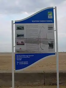 The Seaton Carew Wreck is a protected wrecksite lying in the intertidal zone at Seaton Carew.[1] Prior to 1996 the wreck had been completely covered by the sand of the beach, but it was exposed in 1996 and 2002 and has been regularly exposed since 2004. The wreck is of a type of vessel known as a collier brig which would have been ubiquitous in the 18th and 19th centuries and is unusual on the North-East coast for the high degree of preservation. The wreck is a Protected Wreck managed by Historic England.