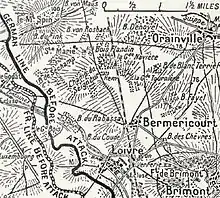 During the German withdrawal to the Siegfriedstellung (Hindenburg Line) in March 1917, a modest withdrawal took place in the neighbourhood of Soissons. On 17 March, the German defences at Crouy and Côte 132 were found to be empty and as French troops followed up the retirement, German troops counter-attacked at Vregny and Margival, which reduced the speed of the French pursuit to a step-by-step advance. By April, the French advance had only progressed beyond Neuville-sur-Margival and Leuilly. On 1 April, a French attack along the line of the Ailette–Laon road reached the outskirts of Laffaux and Vauxaillon. Vauxeny and Vauxaillon were occupied a few days later.[10]
