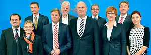 Left to right: Jörg Vogelsänger, Sabine Kunst, Karl-Heinz Schröter, Christian Görke, Helmuth Markov, Dietmar Woidke, Albrecht Gerber, Kathrin Schneider, Günter Baaske, Diana Golze