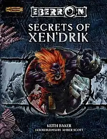 Secrets of Xen'drik is an accessory for the Eberron setting that explores the continent of Xen'drik, with its shattered cities and vast dungeons which hold the secrets of countless fallen empires. This book contains a comprehensive overview of Xen'drik and the gateway city of Stormreach. It includes new feats, prestige classes, spells, equipment, and magic items. It also provides encounters and magical locations that can be dropped into existing campaigns, as well as ready-to-play adventures, monsters, and villains.