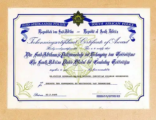 121. "Commissioners of the Former South African Police (1913-1994)". South African Mirror. Retrieved 2021-11-25.