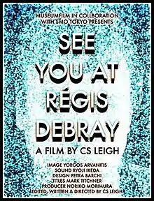 See You at Regis Debray is a 2005 film written and directed by C.S. Leigh and starring Lars Eidinger as the film's only character. Set in 1969, the film sees Andreas Baader hiding in Régis Debray's (who was imprisoned in Bolivia at the time) apartment in Paris.[1] It contains only ten scenes.[2] The film features an original score by Japanese experimental musician Ryoji Ikeda.[3] It also features Leonard Cohen's song "Hey, That's No Way to Say Goodbye".[2]
