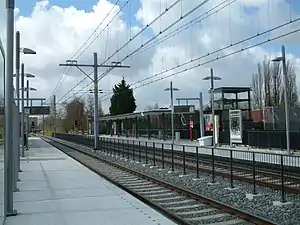 The station features 2 platforms. These platforms are low, and the same level as the tram doors, therefore making it step free. The station is the last station where passengers can change between lines 3 and 4.