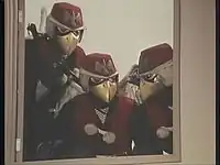 • Ryu Asuka (飛鳥 竜, Asuka Ryū)/Spear Ninja Toppa (槍忍 突破, Yarinin Toppa, 5, 6, 9-13, 23 & 24) - A young spear-wielding ninja who works together with Rei. He was played by Issei Hirota, who previously played Akira/Blue Mask in Hikari Sentai Maskman. In the end of the episode 24, the narrator says that Ryu Asuka has accepted a mission and would left Japan for a short time, even though he will never more be seen in the show.
