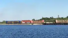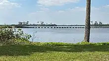 On September 28, 2022, the Fort Myers Division received significant damage from the landfall of Hurricane Ian. At the north end of the line, Arcadia Yard was flooded and the three trestles across the Peace River in Arcadia were partially destroyed, severing the line from the CSX interchange. Three of the four trestles across the Caloosahatchee River near Tice were also destroyed.[23] Due to the damage, Seminole Gulf had to divert freight to the Sarasota Division and transload it to trucks to serve customers on the Fort Myers Division.[24] The Peace River trestles were repaired by February 2023 restoring service as far as North Fort Myers.[14] The Caloosahatchee River trestles are currently being rebuilt which should be complete by the end of 2023.[25]