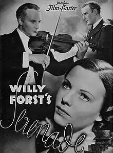 Serenade is a 1937 German drama film directed by Willi Forst and starring Hilde Krahl, Albert Matterstock and Igo Sym.[1] The film was based on a novel by Theodor Storm, which was adapted again in 1958 as I'll Carry You in My Arms by Veit Harlan.