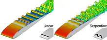 The serpentine plasma actuator represents a broad class of plasma actuator. The actuators vary from the standard type in that their electrode geometry has been modified in to be periodic across its span.[1][2]
