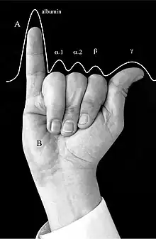 - ↑ Tuazon, Sherilyn Alvaran; Scarpaci, Anthony P (May 11, 2012). Staros, Eric B (ed.). "Serum protein electrophoresis". Medscape. Retrieved 2 October 2013.