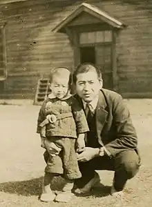 With his son Takahiro Yokomichi