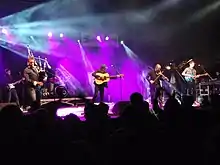 The band recorded the live album Not Enough Shouting on the tour in January and February, which was released in 2000 and features nine of the eleven tracks from Seven alongside five older tracks by the band.[11] The album was conceived as "an important element" of the band's "plan to re-establish the band as a touring unit," and was released to critical acclaim as the first release on the band's newly established record label, Once Bitten Records, where they had control over promotion and were able to maximise the impact of sales at gigs.[2] The band followed Seven with Almost an Island in 2002,[12] which squashed rumours that Seven would be the band's final studio album.[13] Several of the tracks from Seven have since appeared on numerous various artists compilation albums. "J-Time" featured as the band's sole entry into Green Linnet Records' anniversary "best-of" album Green Linnet Records: 25 Years of Celtic Music (2001),[14] and also featured on Mandeca Records' compilation Celtic: The Essential Album (2002),[15] whilst "Psycho Woman" was included on CNR Music's Belgium-released Friends of Folk: Volume 4 compilation (1999).[16]
