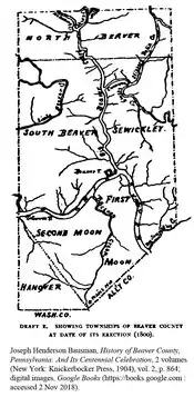 2. Joseph Henderson Bausman, History of Beaver County, Pennsylvania: And Its Centennial Celebration, 2 volumes (New York: Knickerbocker Press, 1904), vol. 2, p. 871; digital images, Google Books (https://books.google.com : accessed 2 Nov 2018).
