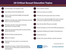 List of "19 Critical Sexual Education Topics" published by the US Centers for Disease Control and Prevention in 2016