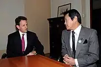 Shōichi Nakagawa with Timothy F. Geithner, United States Secretary of the Treasury (Rome, 13 February 2009)