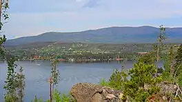 Shadow Mountain Lake as photographed by the United States Forest Service in 1947, with Grand Lake in the upper-right corner.