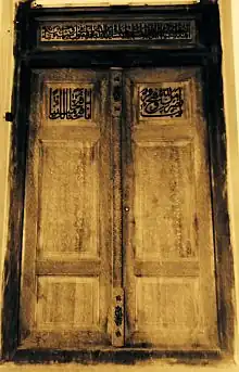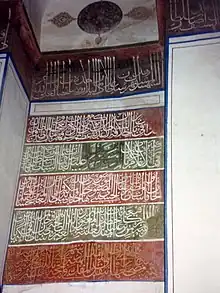 The lower section of the walls of the mausoleum are decorated with tile works that are hexagonal in shape.[1][2] On the top of the entrance door, on the east side, there are three lines of poem from Saadi Shirazi, which are now barely visible and have nearly faded off.[1][3]