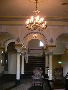 The Victorian Public Works Department subsequently undertook a major restoration project at a cost of approximately $2.5 million which was finally completed on 14 April 1981. While many historic interior features were intact including the grand staircase, verandah, second storey parlour, halls and arches and 1920s elevator most of the rooms were upgraded with modern facilities and the top storey beneath the mansard roof, which were subject to water ingress and pigeon roosting was boarded off and the basement level was closed. The hotel was leased to Clover Hotels.
