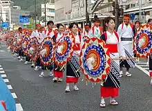 The Bon-odori, a Japanese dance which is part of the Obon Festival, is widely enjoyed by the people in Tottori during the summer. There are various bon-dances throughout Japan, and the dances in Tottori can be categorized as Kasa-odori (a dance with a paper umbrellas) and te-odori (hand dance).