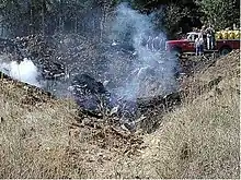 On September 11, 2001, the Shanksville Volunteer Fire Department responded to the United Airlines Flight 93 crash scene to search for survivors.[2] They found a smoking crater 8 feet (2.4 m) to 10 feet (3.0 m) deep, and 30 feet (9.1 m) to 50 feet (15 m) wide.[3] None of the 44 people on board survived.[4] Flight 93 was one of four airliners hijacked that day as part of the al-Qaeda terror attack on the United States. It is widely held that the Flight 93 hijackers intended to use the aircraft to attack the United States Capitol building in Washington, DC.[5]