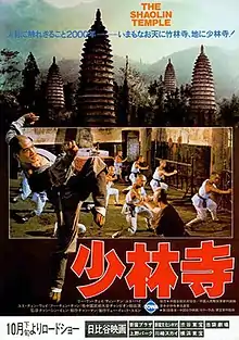 The Shaolin Temple (少林寺) is a 1982 Chinese–Hong Kong martial arts film directed by Chang Hsin Yen and starring Jet Li in his debut role (credited as Jet Lee in the film) along with Ding Lan and Yu Hai in supporting roles. The film is based on the Shaolin Monastery in China and depicts Shaolin Kung Fu.[1] The film was among the first major co-productions between Hong Kong and mainland China, and the first to be filmed in mainland China with a mostly mainland cast.[2] The film's plot has an episodic storytelling structure while combining action, comedy and romance elements.[3]