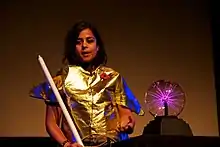 Sheila Kanani attended Wimbledon High School.[1] She studied Physics with Astrophysics at the University of Manchester, which she graduated from in 2006.[1] Kanani completed several summer placements, working in Australia using the Parkes telescope to search for exoplanets, at Jodrell Bank Observatory using pulsar astronomy.[2] She attended a Space Camp in Houston, Texas.[3] In 2012 she earned her PhD, which saw Kanani working with the Cassini spacecraft, analysing Saturn's magnetosphere from the Mullard Space Science Laboratory.[4][5][6][7] Whilst there, she received a NASA Group Achievement Award.[8][9]