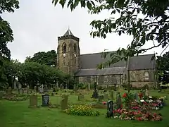 Shelley Methodist Church, off Far Bank at the west of the village, is a Grade II listed building dating to 1785–6, originally a Methodist New Connexion chapel.[10][11] The Church of England's Gothic Revival Church of Emmanuel is on Huddersfield Road at the east of the village.[12] Built in 1868, it is a Grade II listed building.[13] A United Reformed Church on Water Lane is closed.