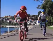 The opening scene of BMX Bandits, featuring Shelly Beach