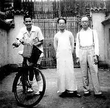 Shen Congwen (far right) with Gu Chuan (far left) and Zhou Youguang (middle) in 1946