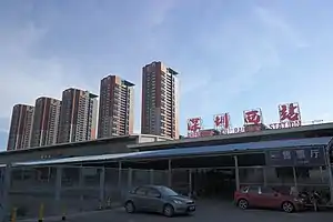 Shenzhen West railway station (Chinese: 深圳西站; pinyin: Shēnzhèn Xī Zhàn; Jyutping: sam1 zan3 sai1 zaam6) is a railway station in Shenzhen on the Pingnan railway. Constructed as a freight station in 1989, Passenger station was built during 1993, opening in 1994 for passenger use. In late 2003 it was renovated and enlarged from a few hundred square metres in area to about 3,800 m2 (41,000 sq ft). Shenzhen West railway station, originally known as Nantou railway station, is located on Xuefu Lu, Nanshan District. It is about 10 kilometers from Shekou Port.