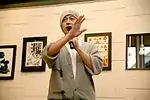 At a March 2014 press conference for the show, Mitani said that only real Sherlockians can enjoy the show.[25] Though the comment aroused criticism, he stated that what he wanted to say is that real Sherlockians should have the playfulness of mind to accept and enjoy any adaption of the series of Sherlock Holmes and that the material is worth creating derivative work.[24] He also said that the presence of John Watson as a storyteller is very important and a splendid invention of Arthur Conan Doyle. He describes Watson as having warmth and passion that Holmes lacks and appreciates Martin Freeman who plays Watson with good nature in Sherlock. In 2007, Freeman appeared in the play The Last Laugh, based on University of Laughs (Warai no daigaku, 笑の大学) written by Mitani.[24]