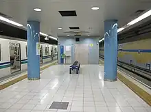 The Seishin-Yamate Line platform is located on the second basement ("B2F") level, and the Kaigan Line platform is located on the third basement ("B3F") level.