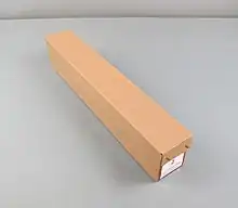 Rolls of paper, rolled artwork, curtain rods, posters, etc are often shipped in tubes. Many tubes are made of layers of paperboard of appropriate strength. The open ends may have plastic caps or plugs.[2][3] Pressure sensitive tape can seal tubes; some paper tubes have two sections which slide to telescope closed.
