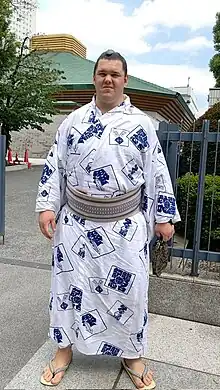 As of July 2023, he is one of the two Ukrainian currently competing in professional sumo,[2][3] and the only one in the history of the sport to have reached the status of sekitori.[4]