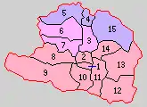 Shiwa Town (1. Hizume; 2. Furudate; 8. Mizuwake; 9. Shiwa; 10. Akaishi; 11. Hikobe; 12. Sahinai; 13. Akasawa; 14. Nagaoka)