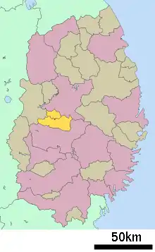 Map showing original extent of Shiwa District in Iwate Prefecture