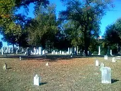 Among many notables interred at the Shockoe Hill Cemetery are Chief Justice John Marshall, Unionist spymaster Elizabeth Van Lew, Revolutionary War hero Peter Francisco, and Virginia Governor William H. Cabell. More than thirteen hundred servicemen are known to be buried here, including at least 22 Revolutionary War veterans; at least 400 War of 1812 veterans; and an estimated 900 Civil War soldiers, both veterans and wartime casualties. Members of the General Society of the War of 1812 have suggested that more veterans of that War are buried at Shockoe Hill, than at any other cemetery in the country. More than 500 Union Army prisoners of war had been buried in Shockoe Hill Cemetery's adjoining African Burying Ground during the Civil War, but the soldiers remains were moved in 1866 to Richmond National Cemetery, three miles to the east.[3] Two markers, one placed by the United Daughters of the Confederacy in 1938, and the other by the Military Order of the Loyal Legion of the United States (a/k/a MOLLUS) in 2002, memorialize those POW burials.[4]