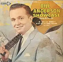 Showcase is a studio album by American country singer-songwriter Bill Anderson. It was released in November 1964 on Decca Records and was produced by Owen Bradley. The album was Anderson's third studio release as a recording artist and second to be released in 1964. It included two singles that became major hits on the Billboard country chart along with subsequent B-sides.