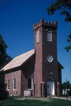 Shrewsbury Church is a historic Episcopal church located at Kennedyville, Kent County, Maryland, United States. It is a rural parish church constructed in 1834, and remodeled to its present vernacular Gothic-influenced appearance in 1890. The church is constructed of brick and features a three-stage buttressed and crenelated tower at the entrance, a low one-story chancel, and Gothic influenced walnut furnishings.[2] South Sassafras Parish, as it was originally known, was one of the original 30 Anglican parishes in the Province of Maryland. Buried in the churchyard is John Cadwalader, a general of the American Revolutionary War.[3][4]
