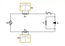 An ammeter shunt allows the measurement of current values too large to be directly measured by a particular ammeter. In this case, a separate shunt, a resistor of very low but accurately known resistance, is placed in parallel with a voltmeter, so that virtually all of the current to be measured will flow through the shunt (provided the internal resistance of the voltmeter takes such a low portion of the current that it is negligible). The resistance is chosen so that the resultant voltage drop is measurable but low enough not to disrupt the circuit. The voltage across the shunt is proportional to the current flowing through it, and so the measured voltage can be scaled to directly display the current value.[2][3]