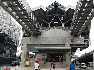 Si Rat station (Thai: สถานีศรีรัช) is a Bangkok MRT station on the Pink Line. The station is located on Chaeng Watthana Road, near Si Rat Expressway in Pak Kret district, Nonthaburi province.[1] The station has four exits and is the closest station to Sukhothai Thammathirat Open University. It opened on 21 November 2023 as part of trial operations on the entire Pink Line.[2][3] It is one of three stations on the line with an island platform.[4]