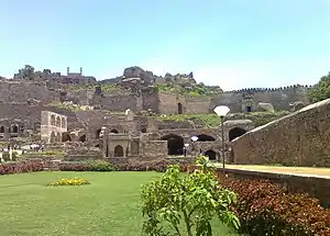 ![]() Modern ruins of the Golconda Fort, which was rebuilt and fortified by Aurangzeb after its conquest in the year 1687 | |||||||||