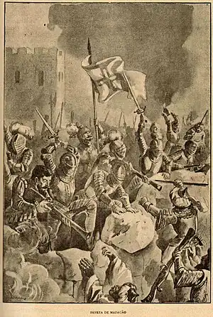 ![]() Defence of Mazagan, drawing by Alfredo Roque Gameiro in the book História de Portugal, Popular e Ilustrada | |||||||