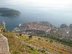 Present day Dubrovnik (Ragusa) and Lokrum island from atop Srđ hill near the Imperial fortress where Hoste hoisted his artillery to bombard the town.
