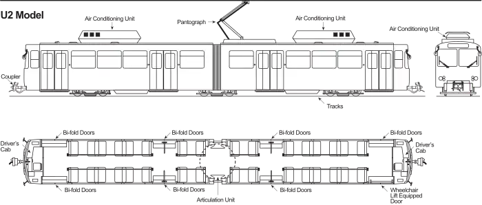 - SD-100 and SD-160 – high-floor LRV for either level boarding at high-platform stations or steps for passenger loading at street level