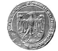 - ↑ His banners had white eagle without a crown on a red filed as their badge according to Banderia apud Grunwald. Andrzej Klein, Nikolas Sekunda, Konrad A. Czernielewski: Banderia Apud Grunwald. Łódź 2000, p. 58-59.