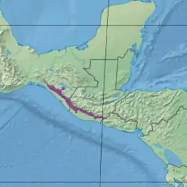 The moist forests ecoregion lies on the southern slope of the Sierra Madre de Chiapas, between the Central American pine–oak forests which cover the mountains' higher elevations to the north, and the Central American dry forests in the Pacific coastal lowlands to the south.[2]